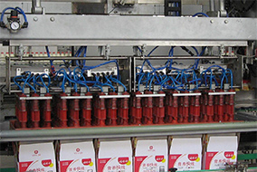 機械式裝箱機通過抓頭充氣、放氣來實現(xiàn)產(chǎn)品的抓取和放置動作。通過雙四連桿機構完成瓶子的提升、移動和降落。為了節(jié)省非工作時間,在空載回程時快速移動以提高生產(chǎn)效率。機械式裝箱機廣泛應用于瓶裝產(chǎn)品的預制箱包裝。